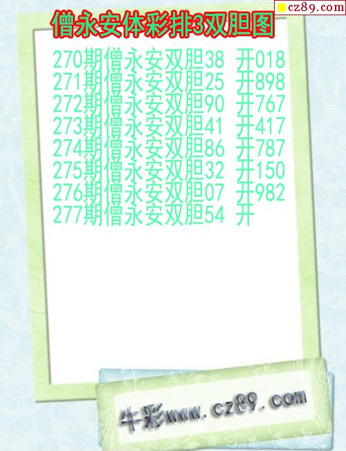 首页 > 排列3图谜 > 25年277期僧永安体彩排3双胆图