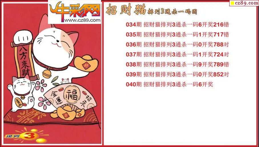 2026040期P3招财猫通杀一码图