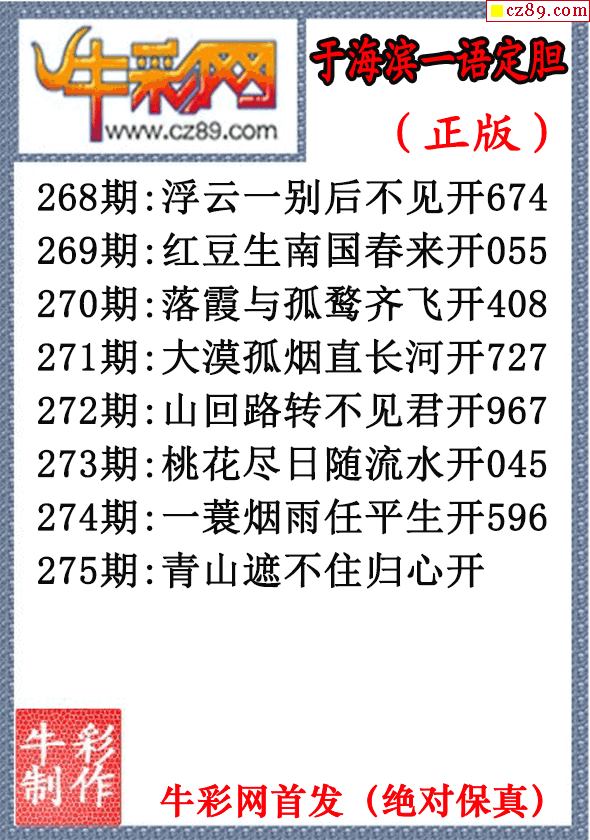 2025274期3d于海滨+每日于海滨号码精选胆码预测